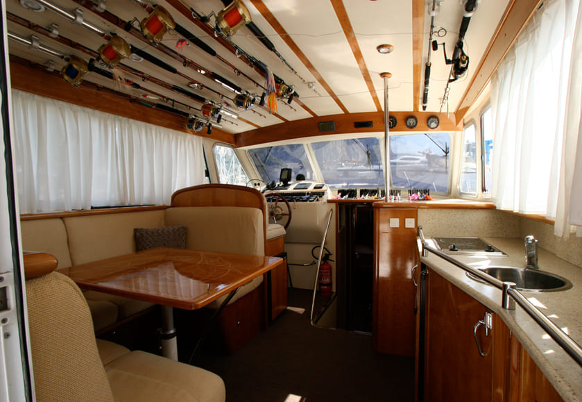 Between 6:00am and 8:00am (depending the season) Fuel, Skipper, Crew, Soft-Drinks, VAT included
